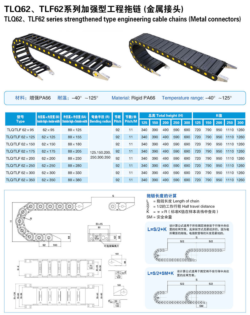 - 產(chǎn)品名稱: TLQ62、TLF62系列加強型工程拖鏈(金屬接頭)